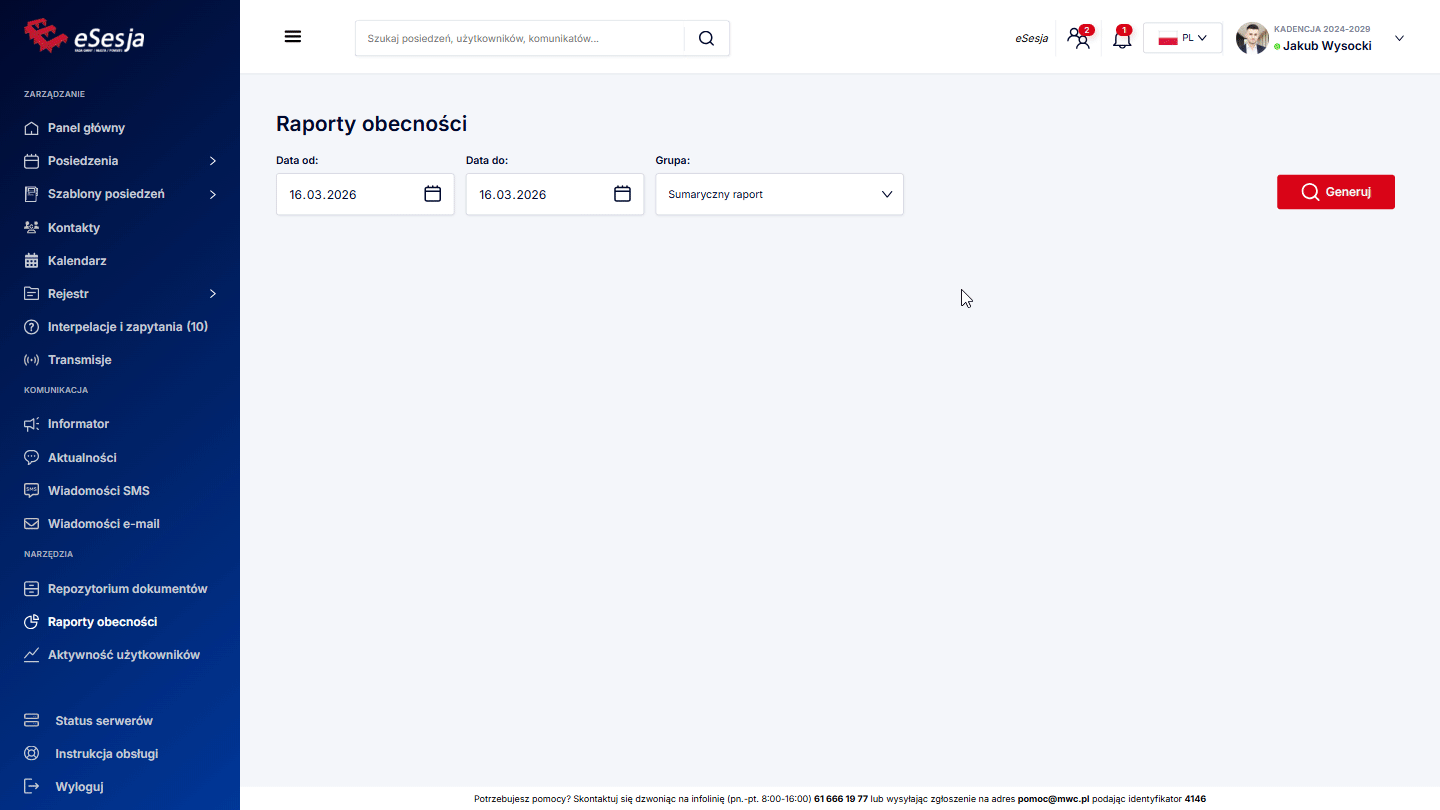 Przedział dat – wybór zakresu dat, dla którego szukamy posiedzenia.