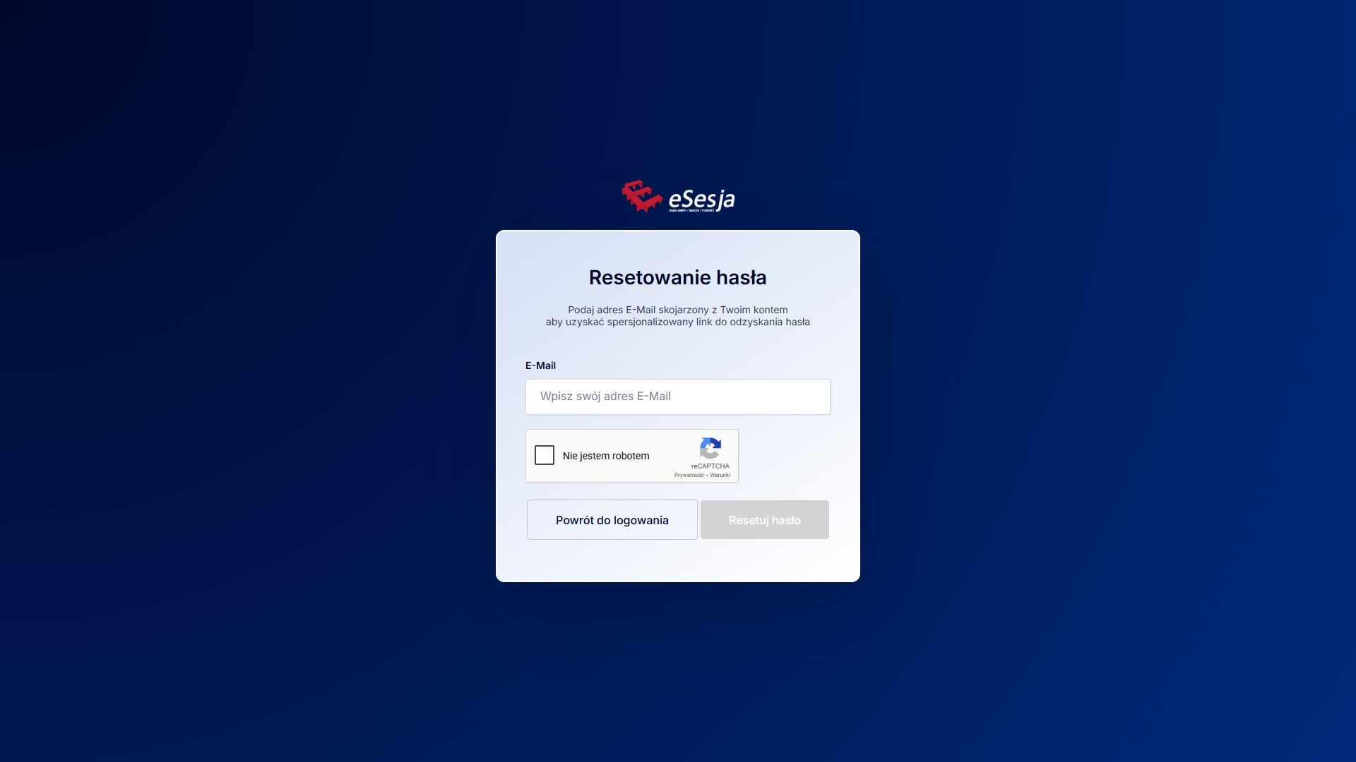 W przypadku gdy zapomnimy hasła do logowania, możemy skorzystać z opcji Zapomniałem hasła. Po kliknięciu otwarte zostanie okno resetowania hasła. Po wpisaniu adresu mailowego i potwierdzeniu, że nie jesteśmy robotem, możliwym będzie kliknięcie przycisku Resetuj hasło. Nowe hasło powinno trafić na wskazany w formularzu adres mailowy.