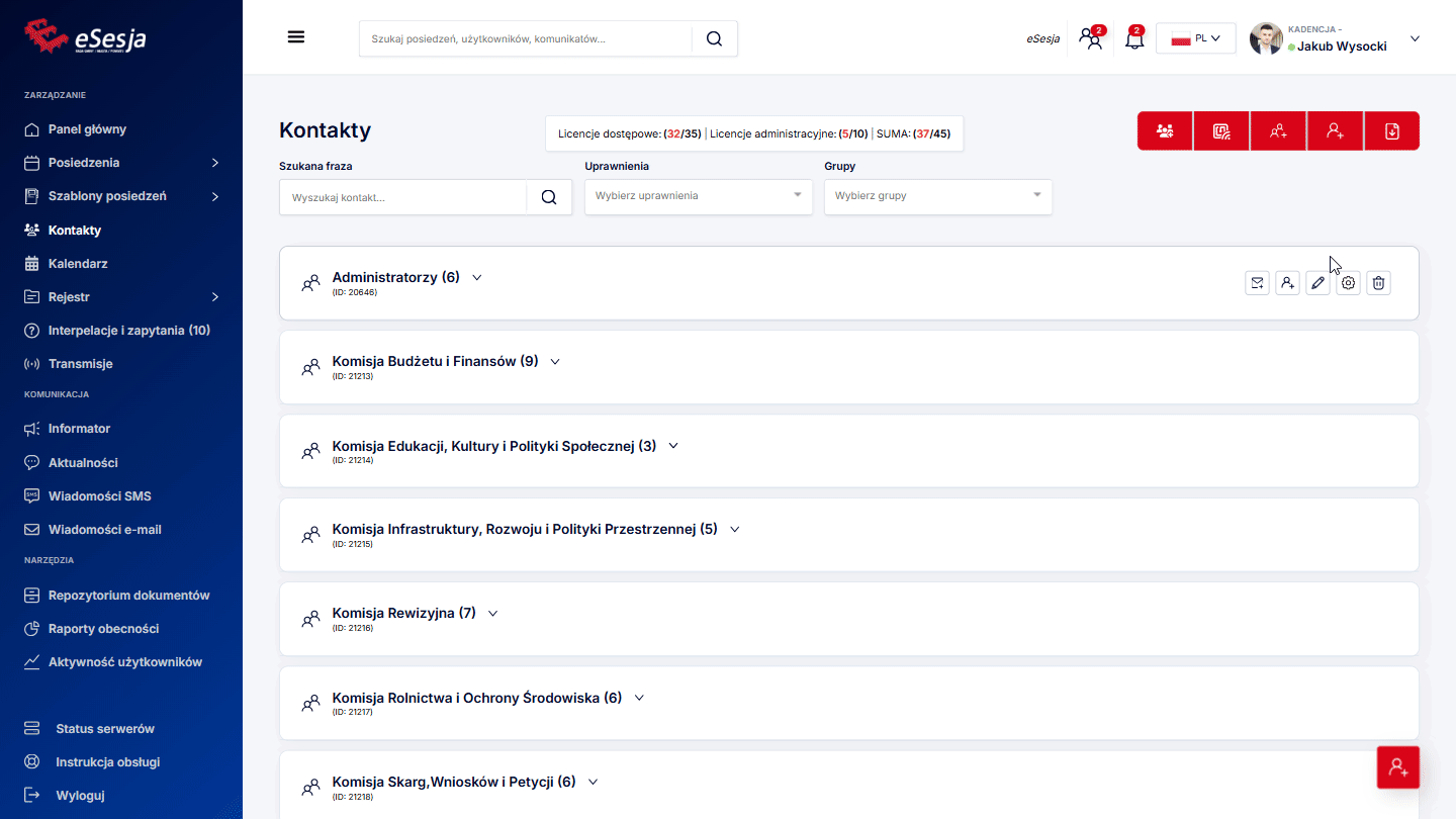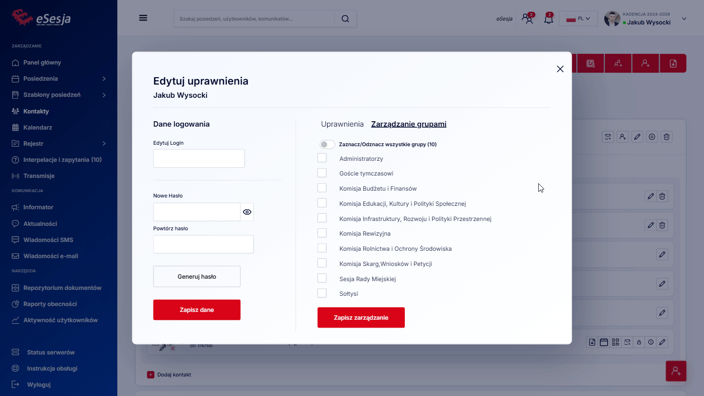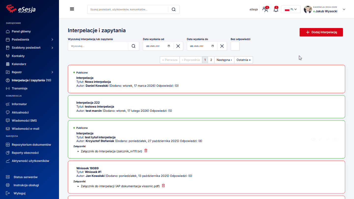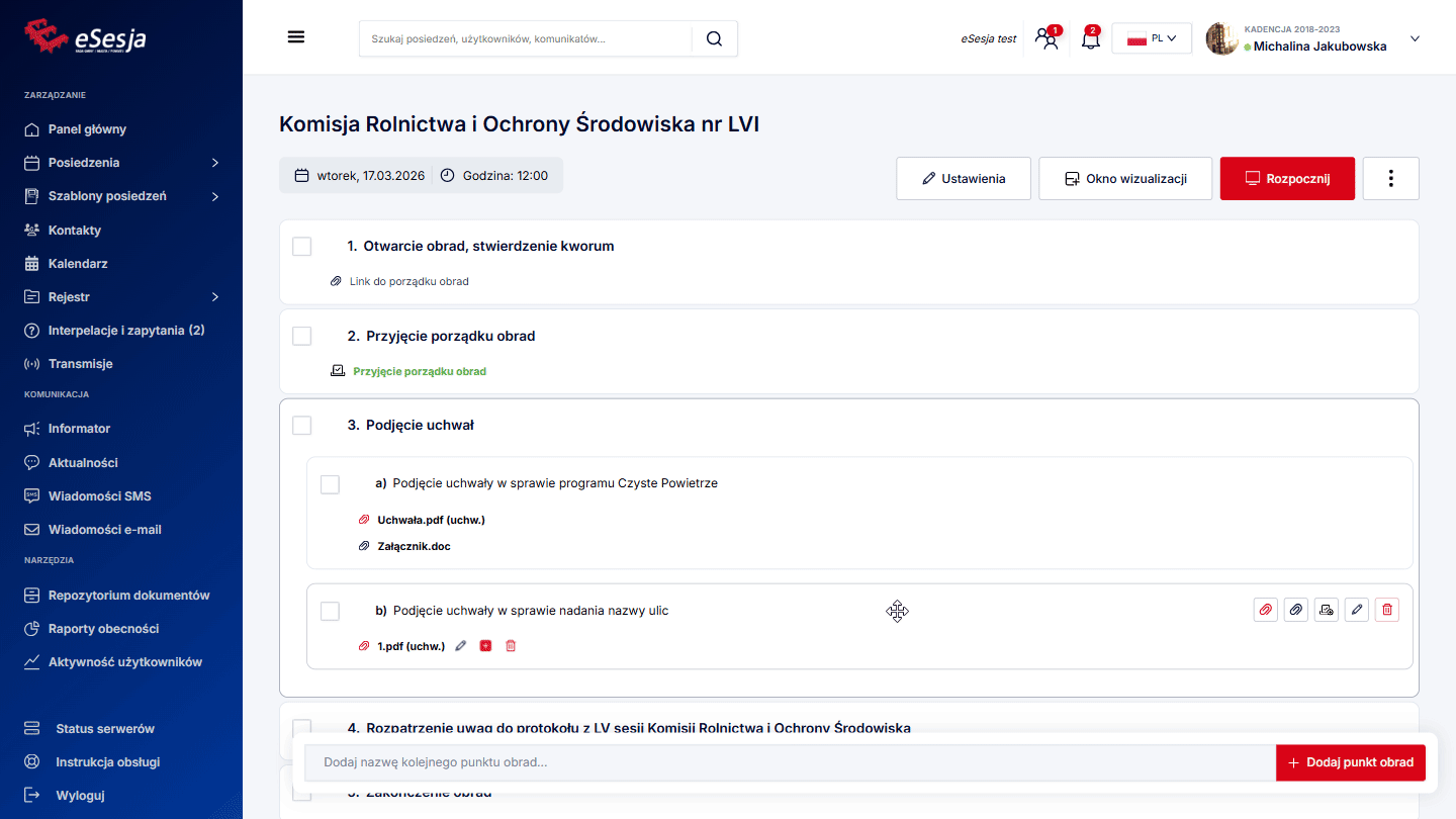 - Dodanie posiedzenia,
