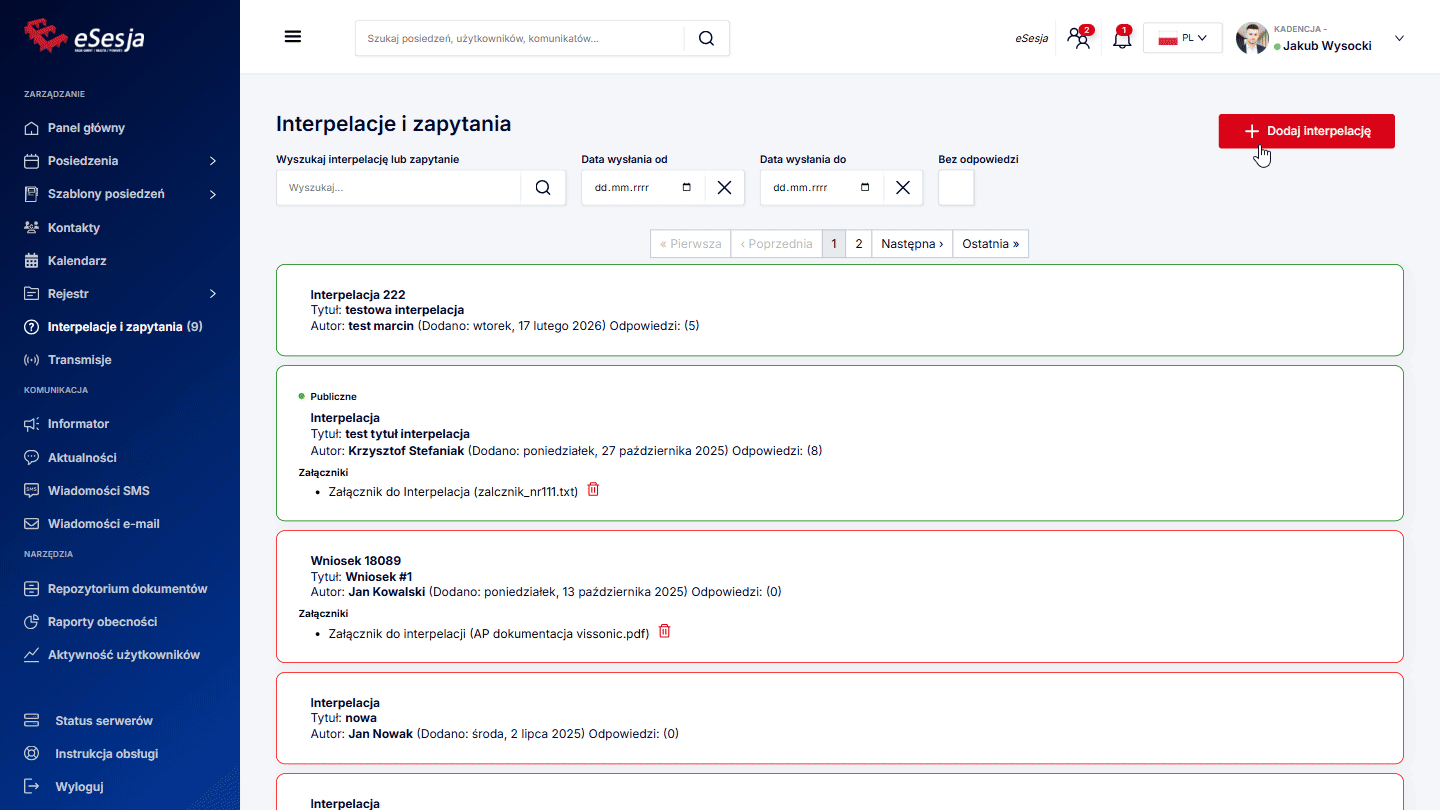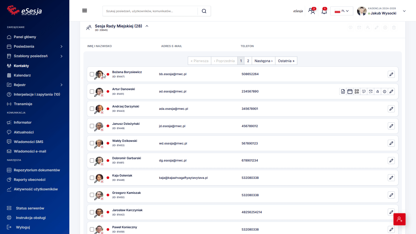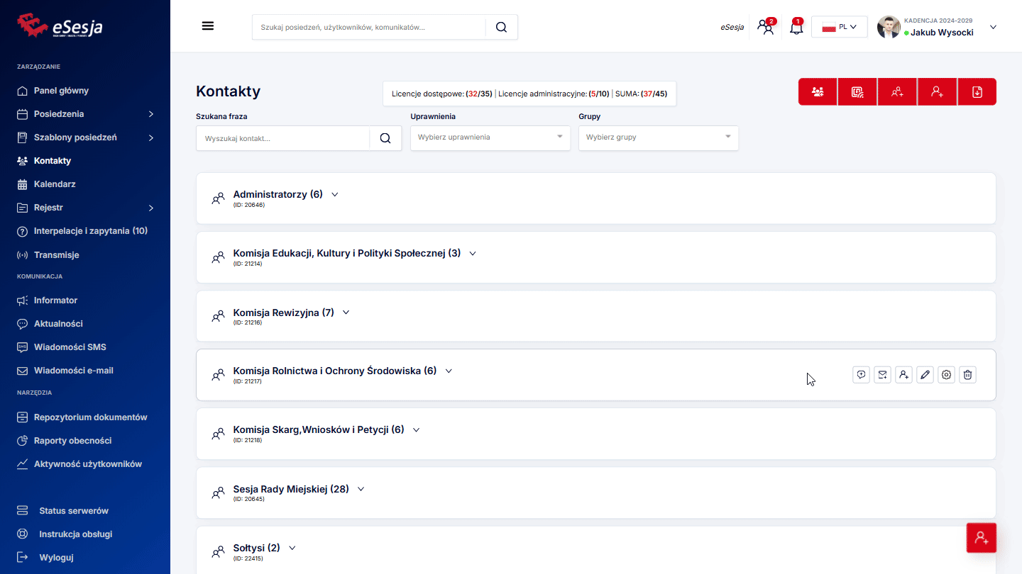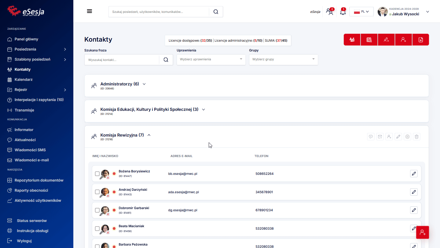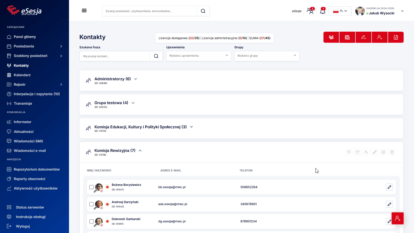 - Dodanie posiedzenia,
