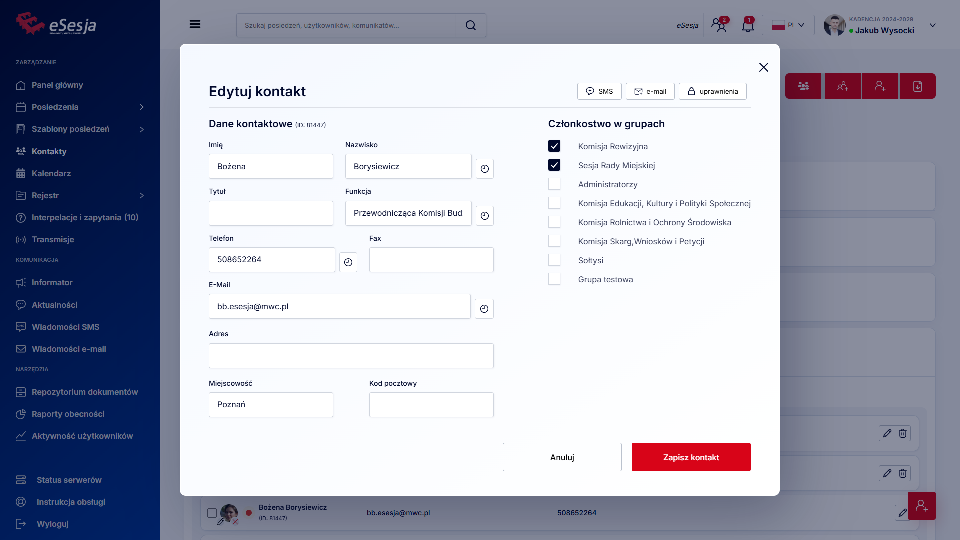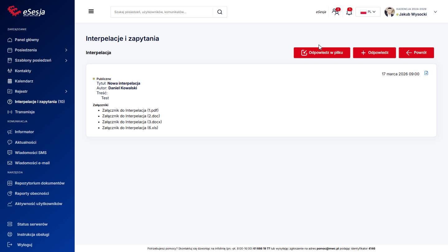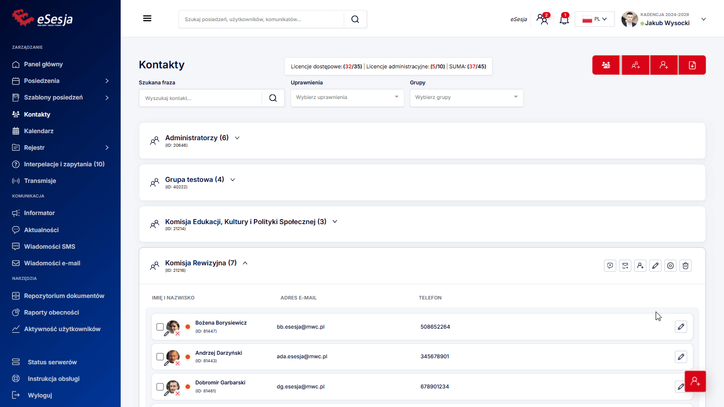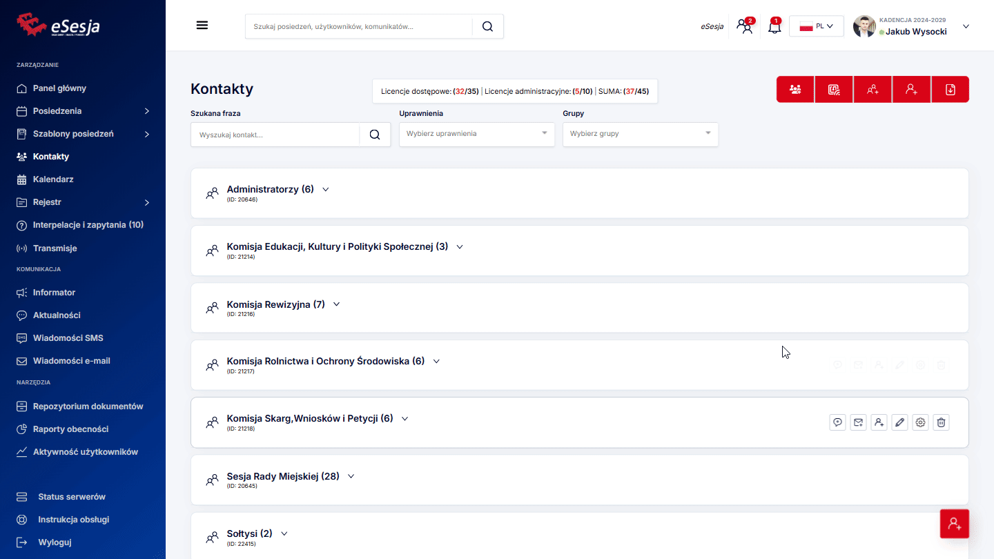 - Dodanie posiedzenia,