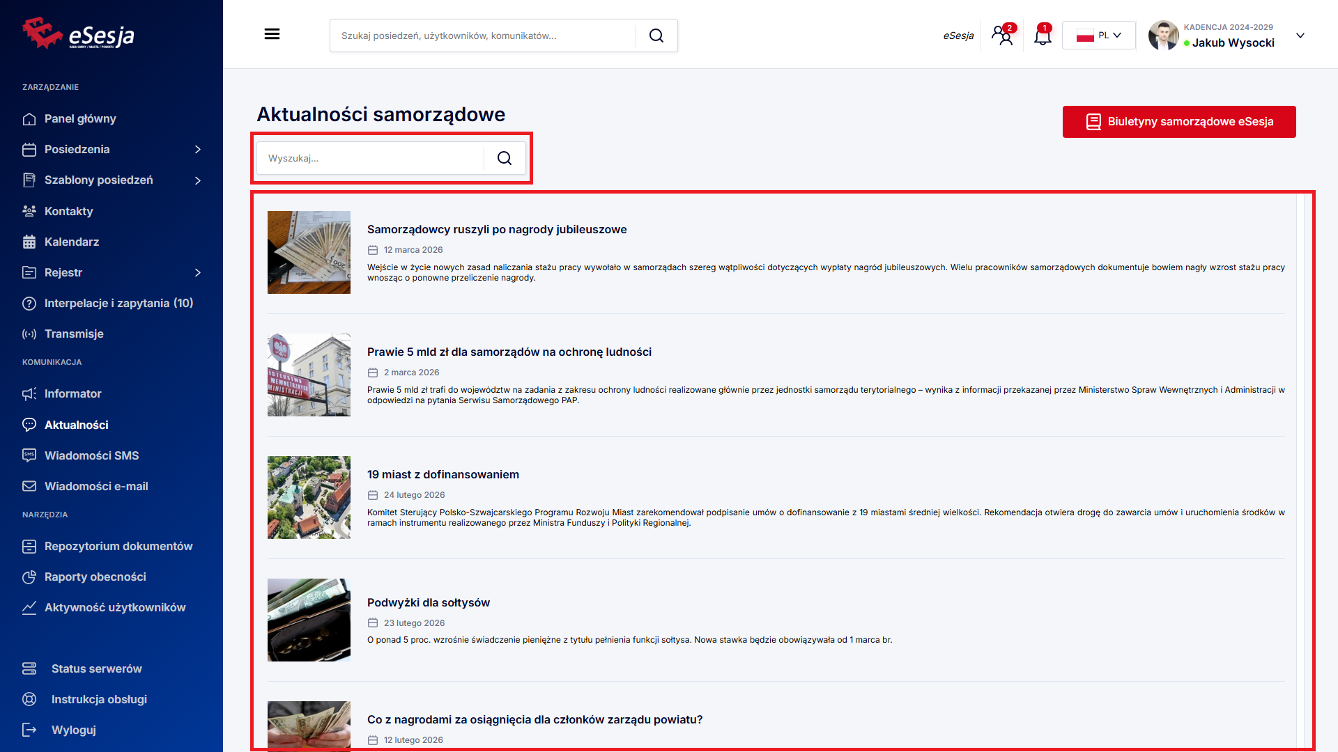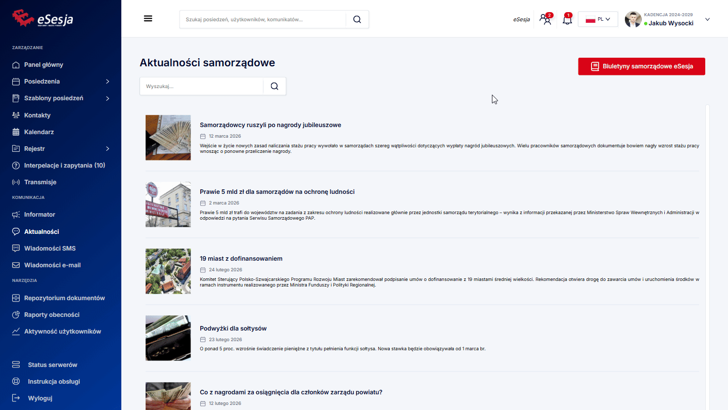 - Aktualności samorządowe – sekcja przedstawiająca bieżące informacje samorządowe.
