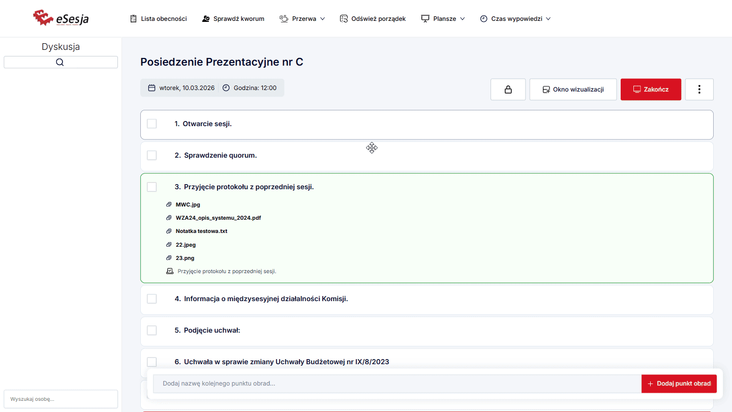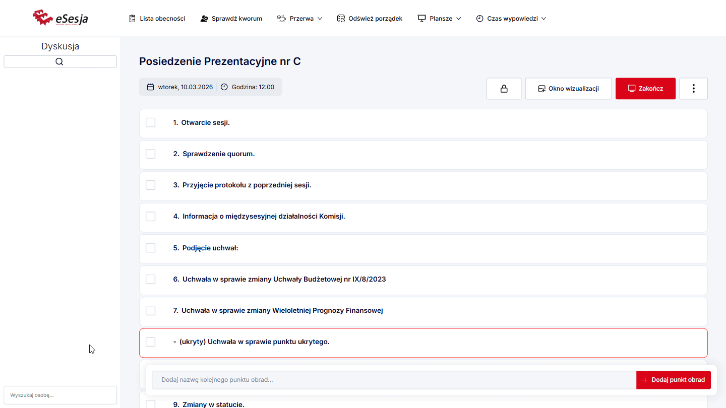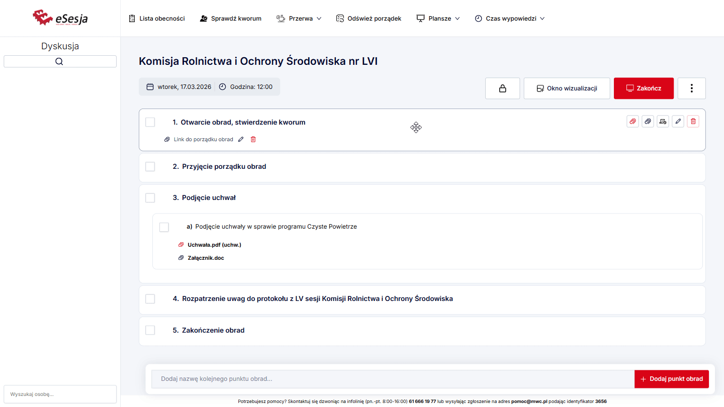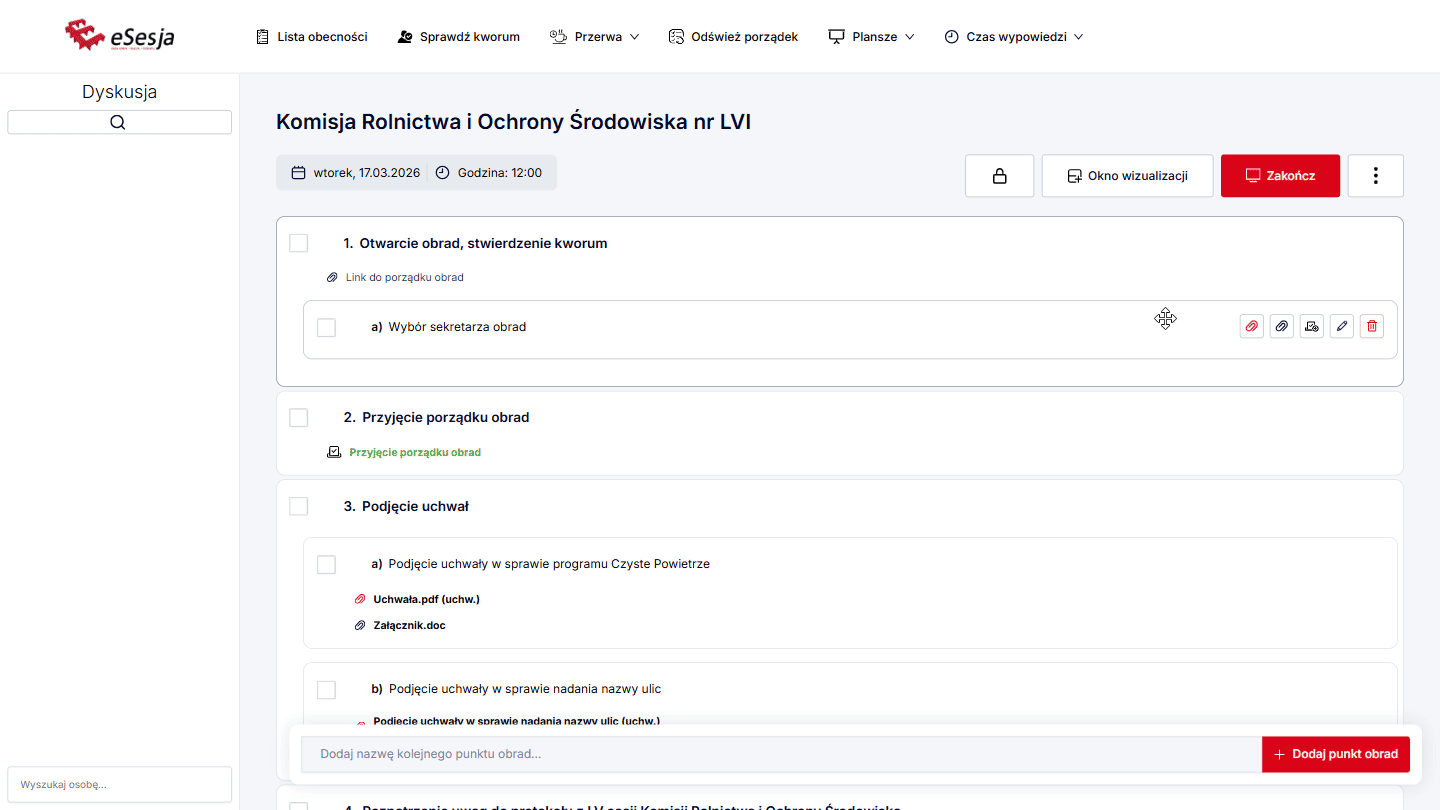 Dodawanie porządku obrad