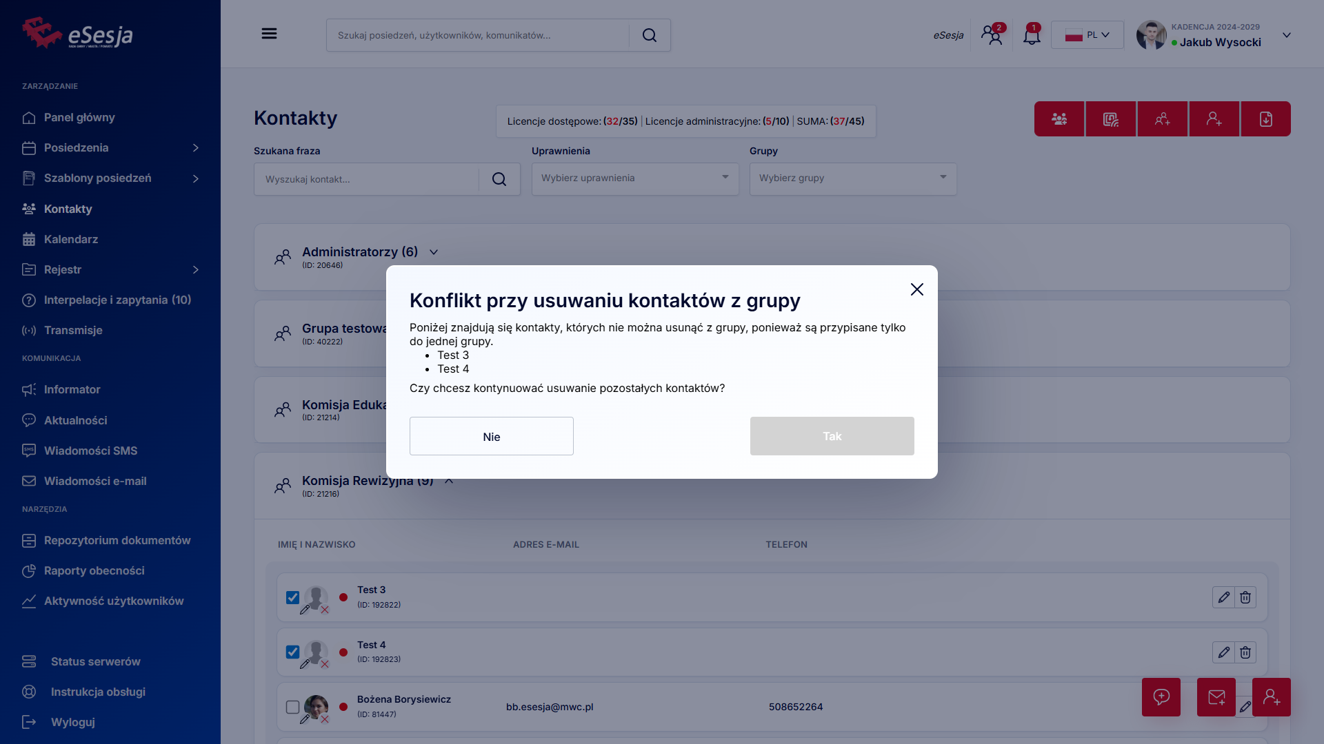 Po wybraniu użytkowników potwierdzamy przyciskiem Potwierdź i ponownie przyciskiem Zapisz zapisujemy dokonane zmiany w głosowaniu.