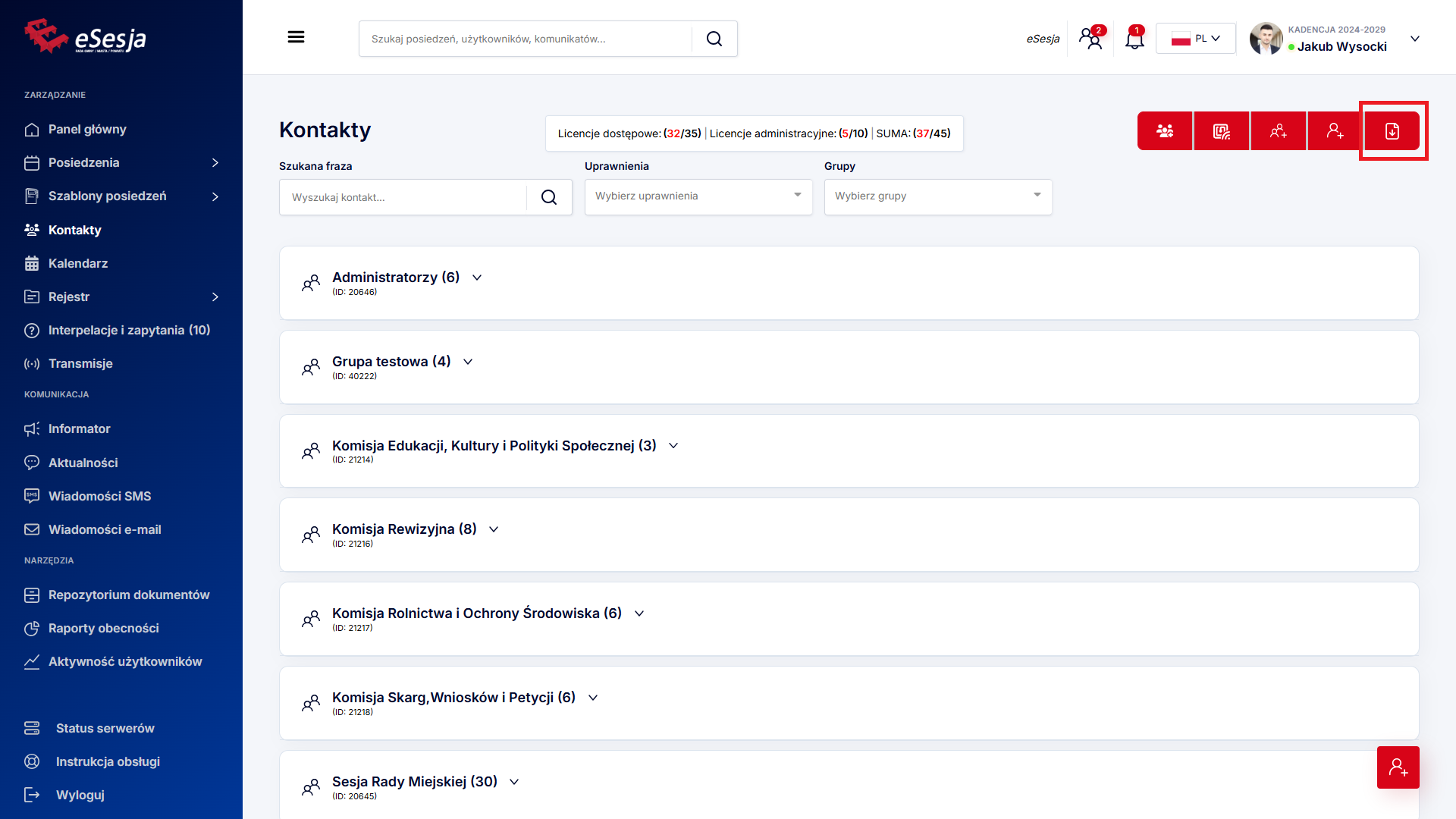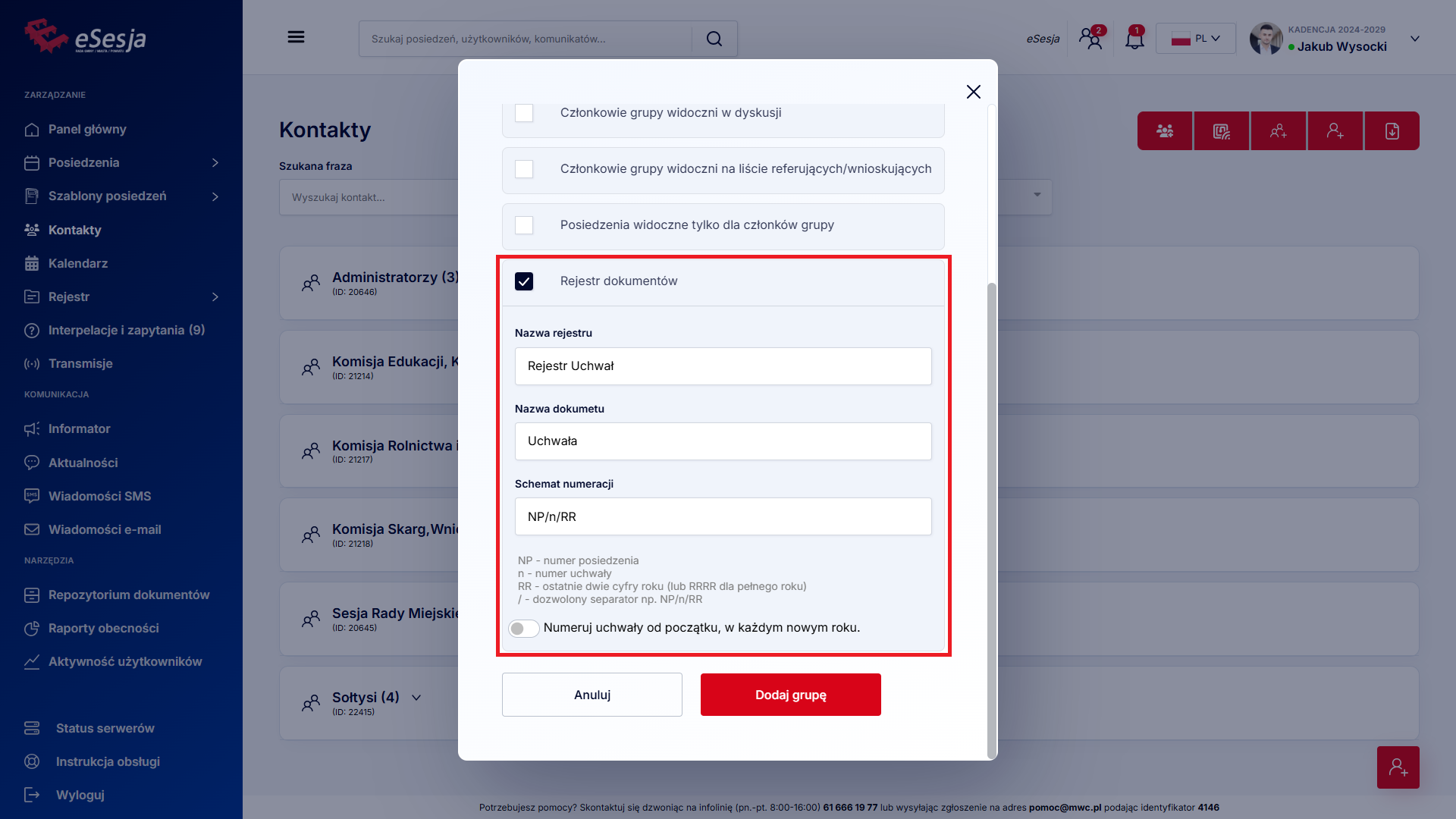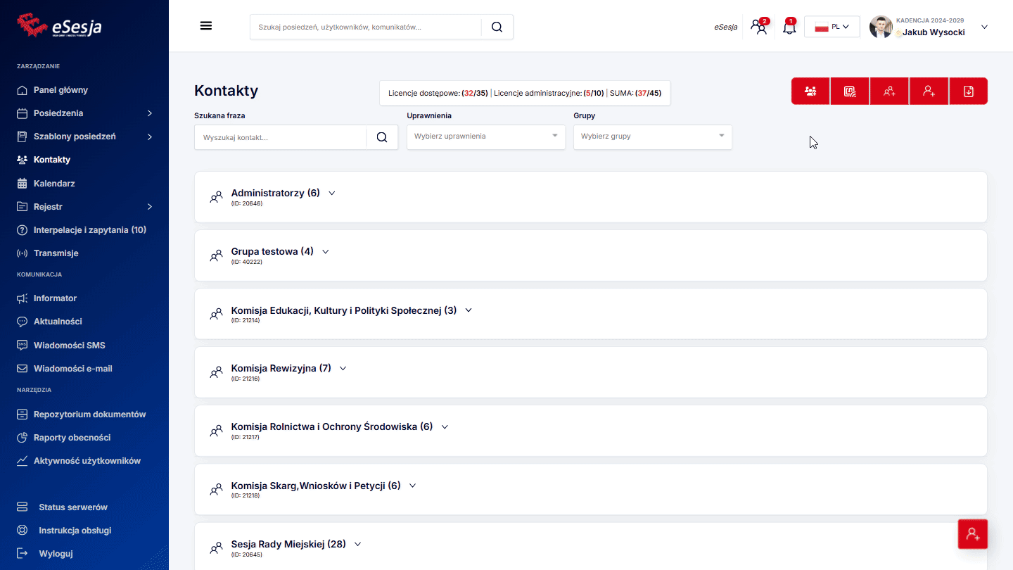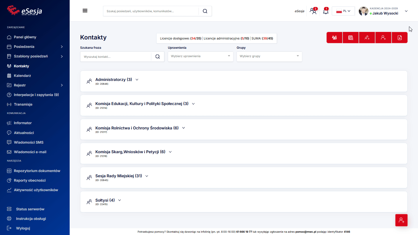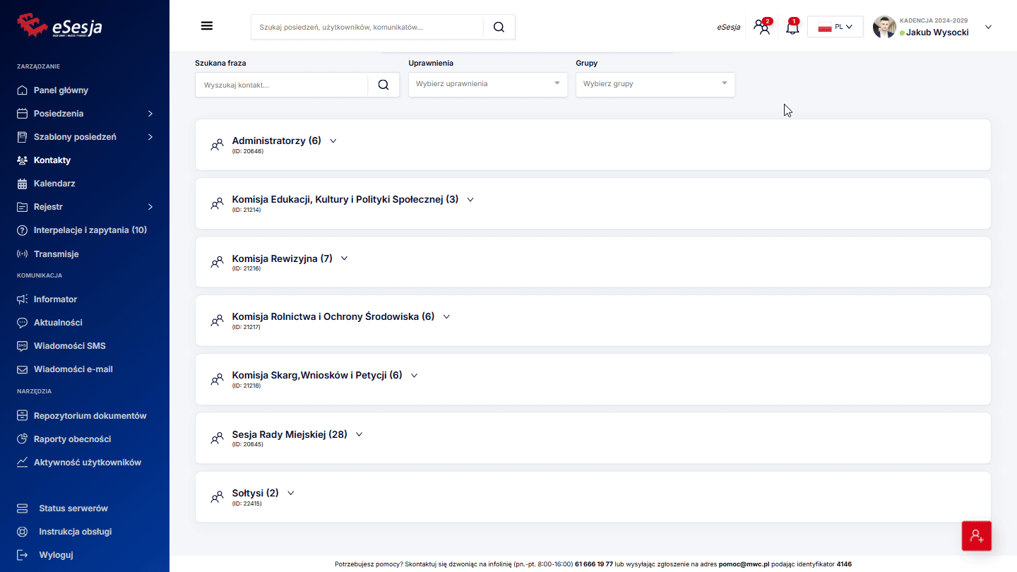 Szukane grupy – opcja wyboru grupy, dla której szukamy posiedzenia.