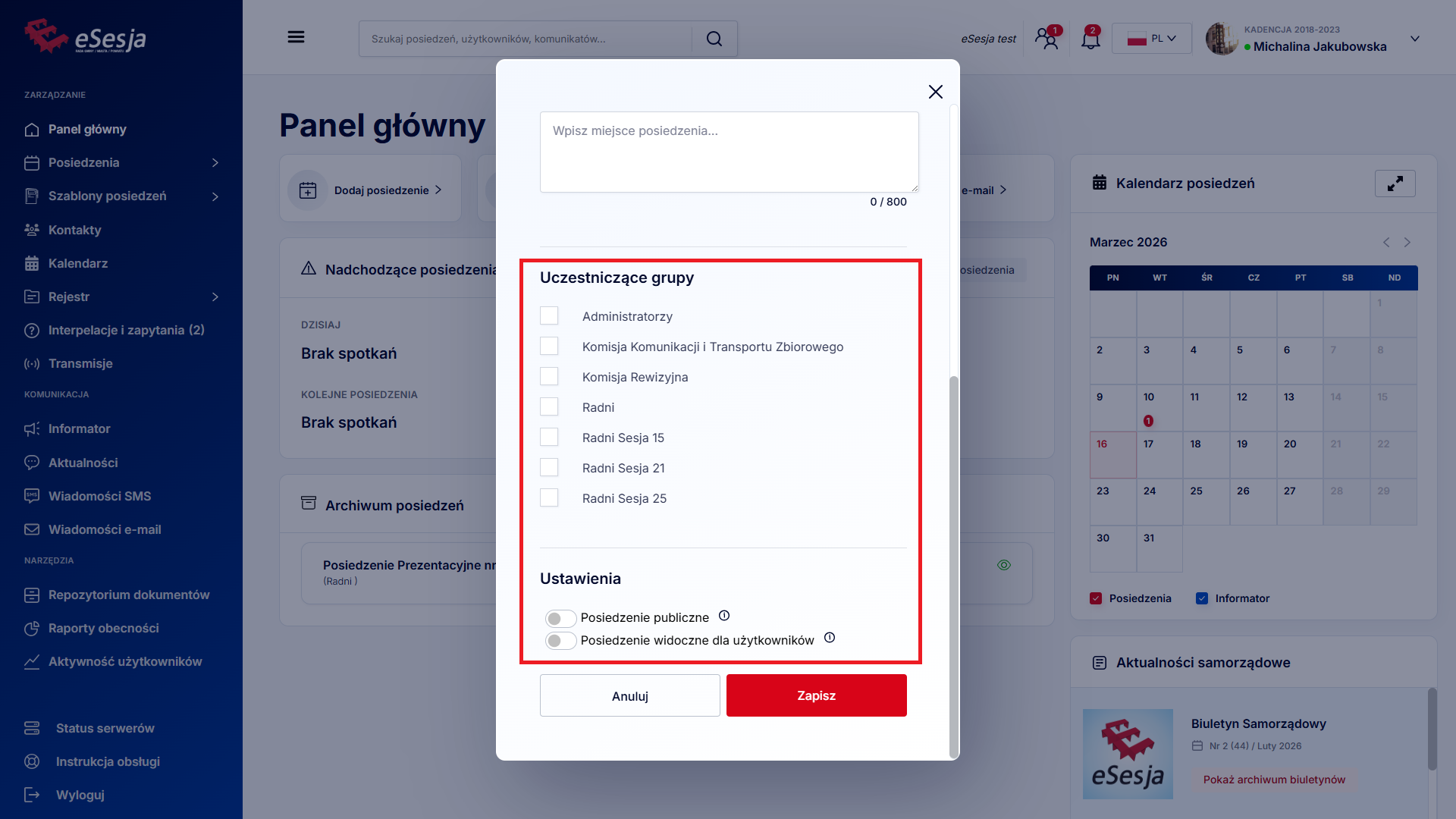 Brak zaznaczenia obu ustawień spowoduje, że posiedzenie będzie widoczne tylko dla administratorów. Ustawienia można w każdej chwili edytować.