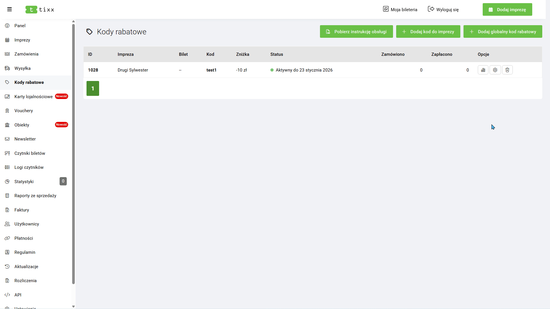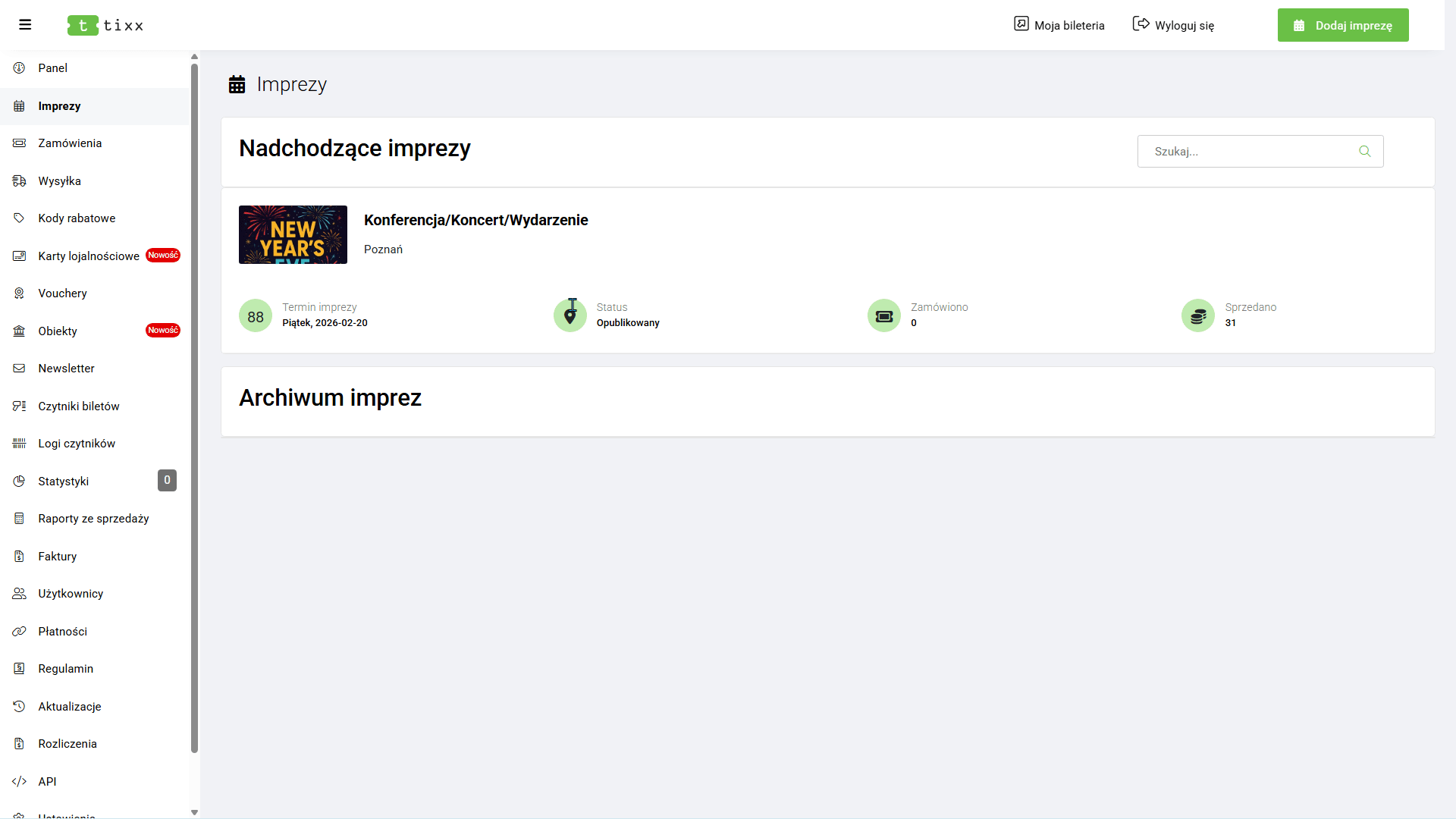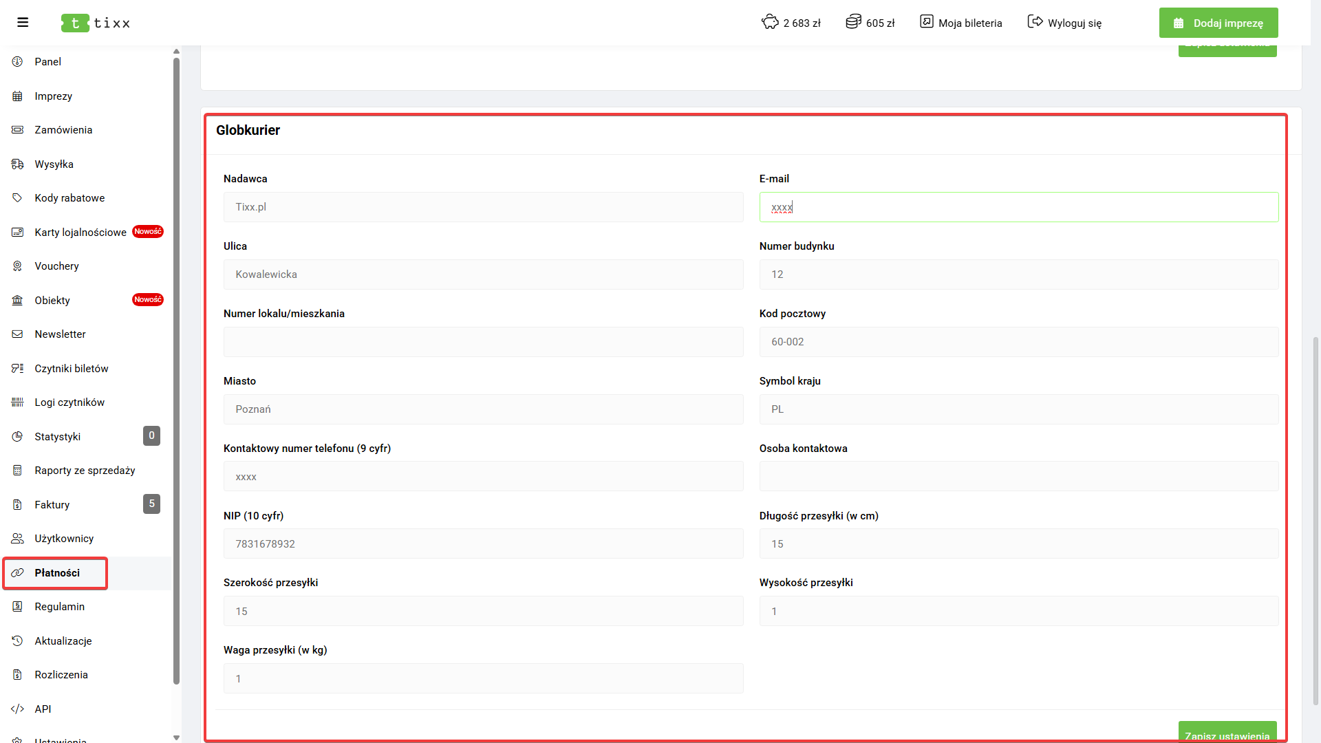Sekcja Płatności służy do integracji zewnętrznych systemów z panelem Tixx.
