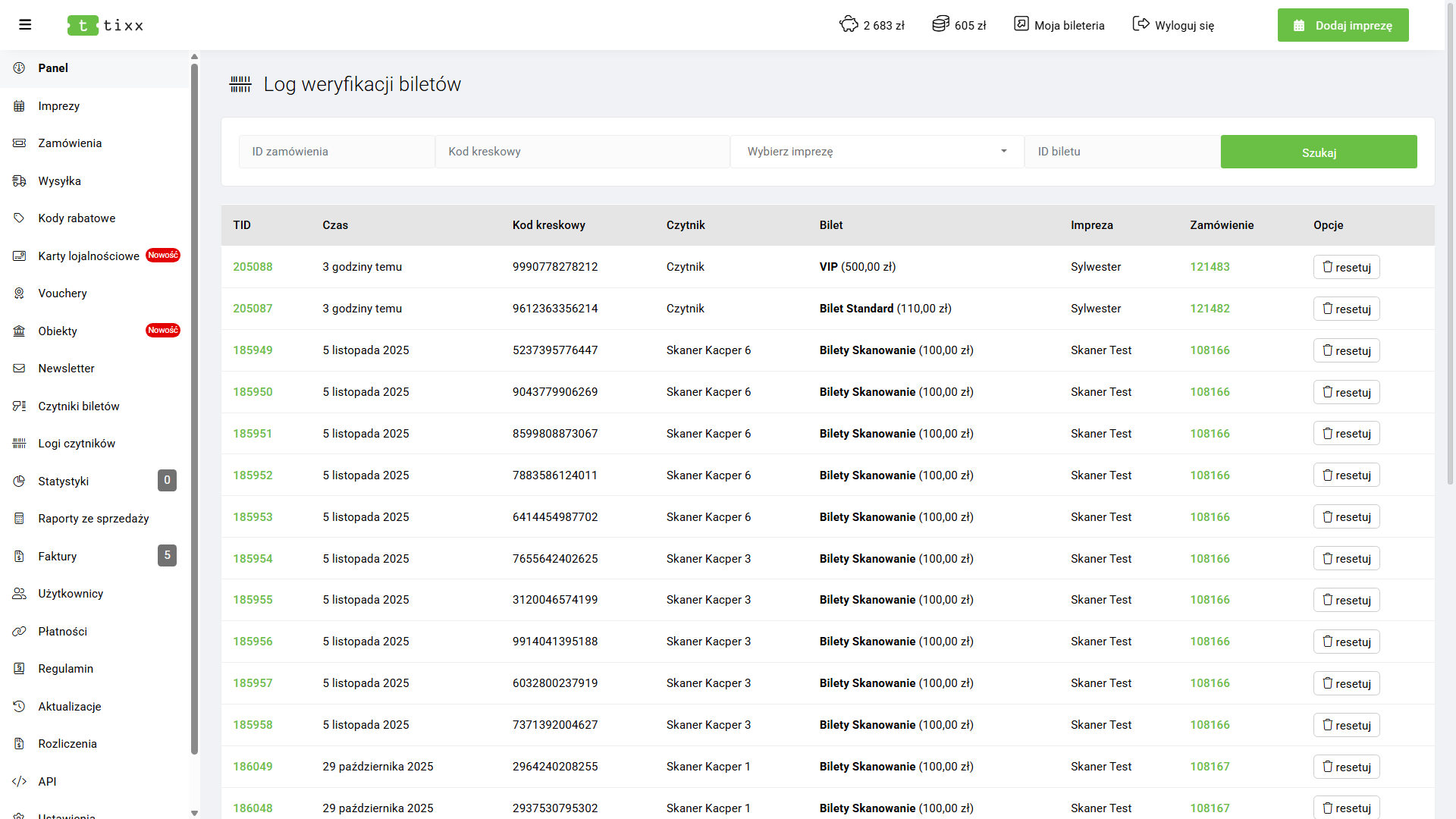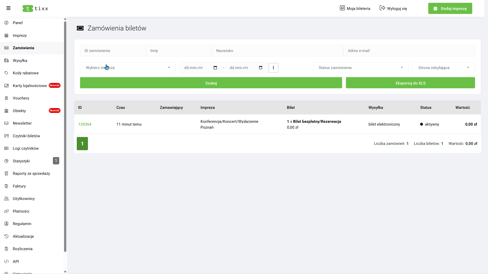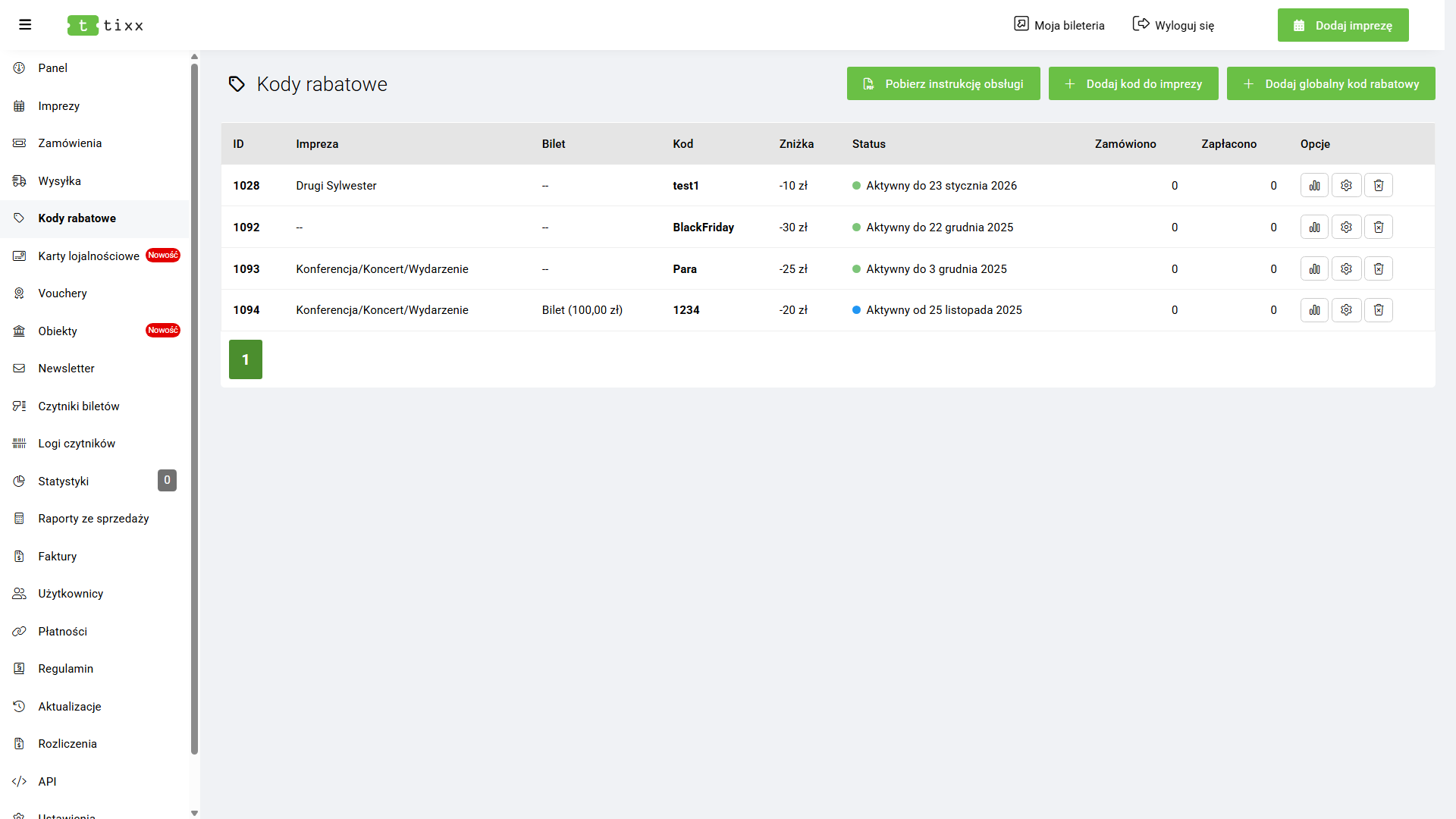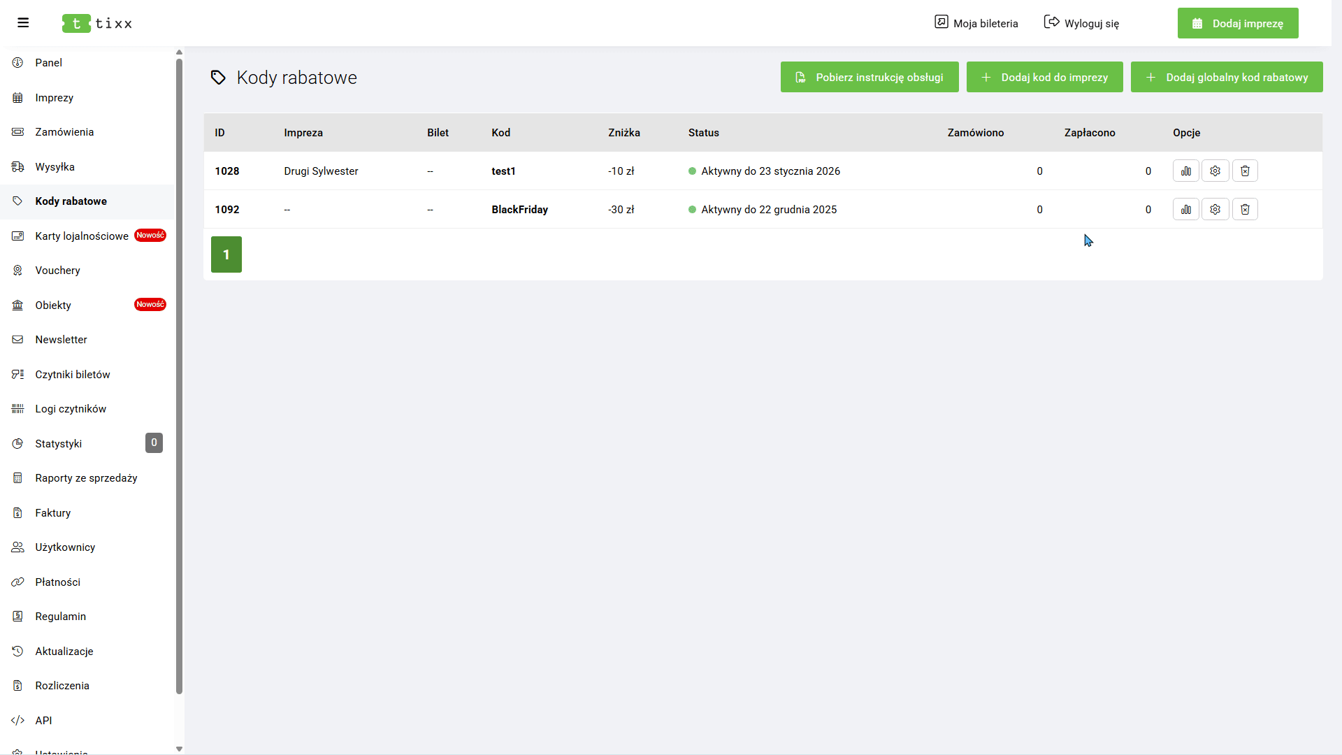 Sekcja Płatności służy do integracji zewnętrznych systemów z panelem Tixx.