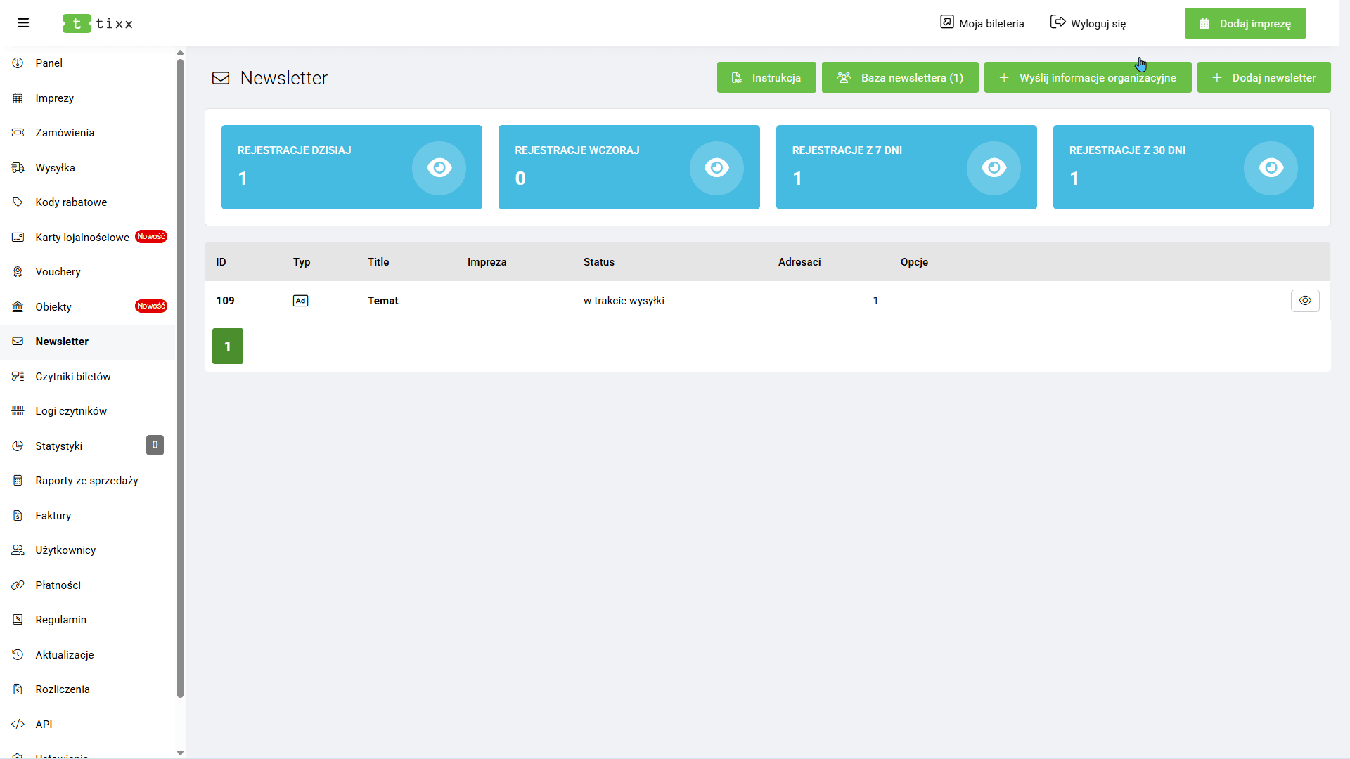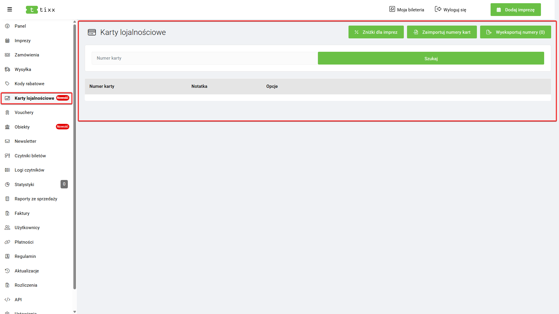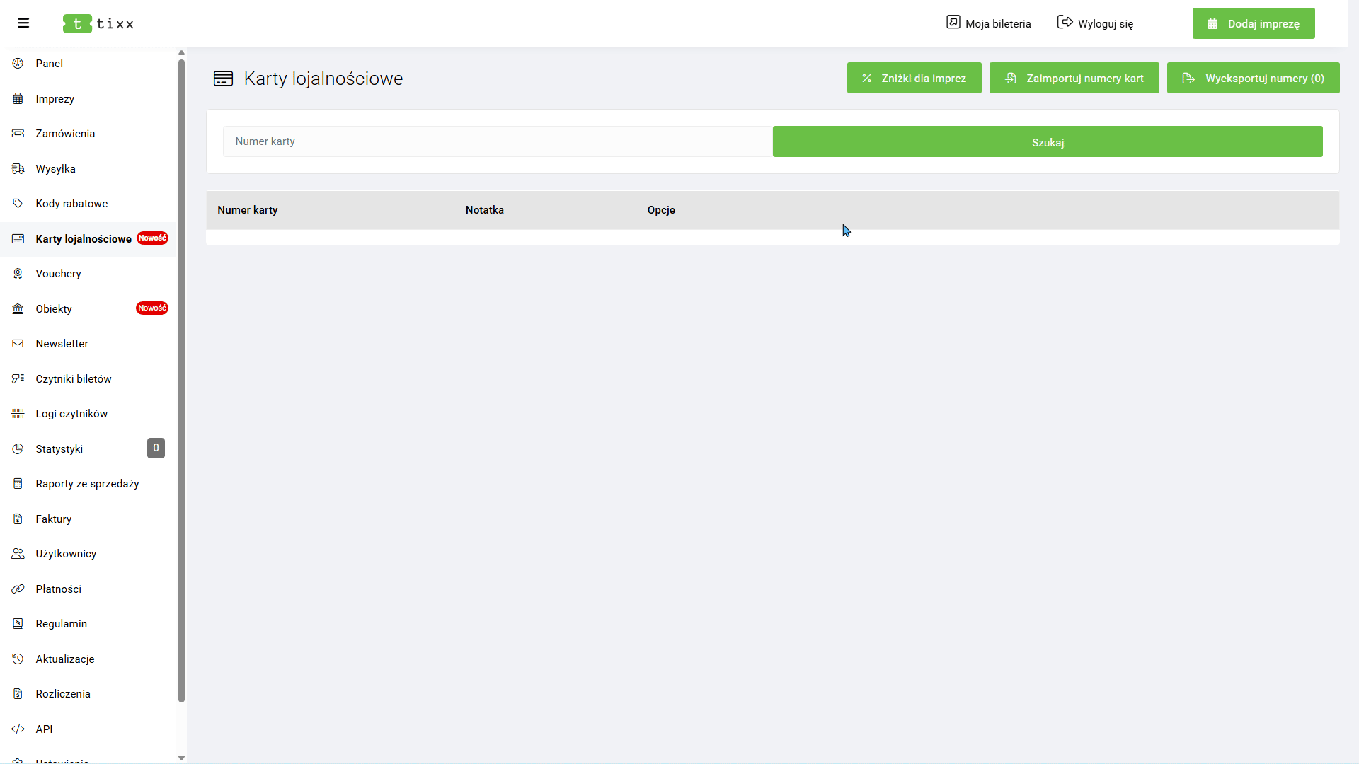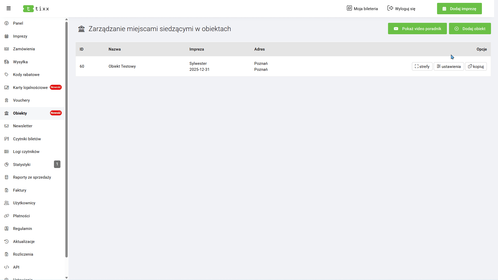 - Moja bileteria – Odnośnik do widoku naszej bileterii