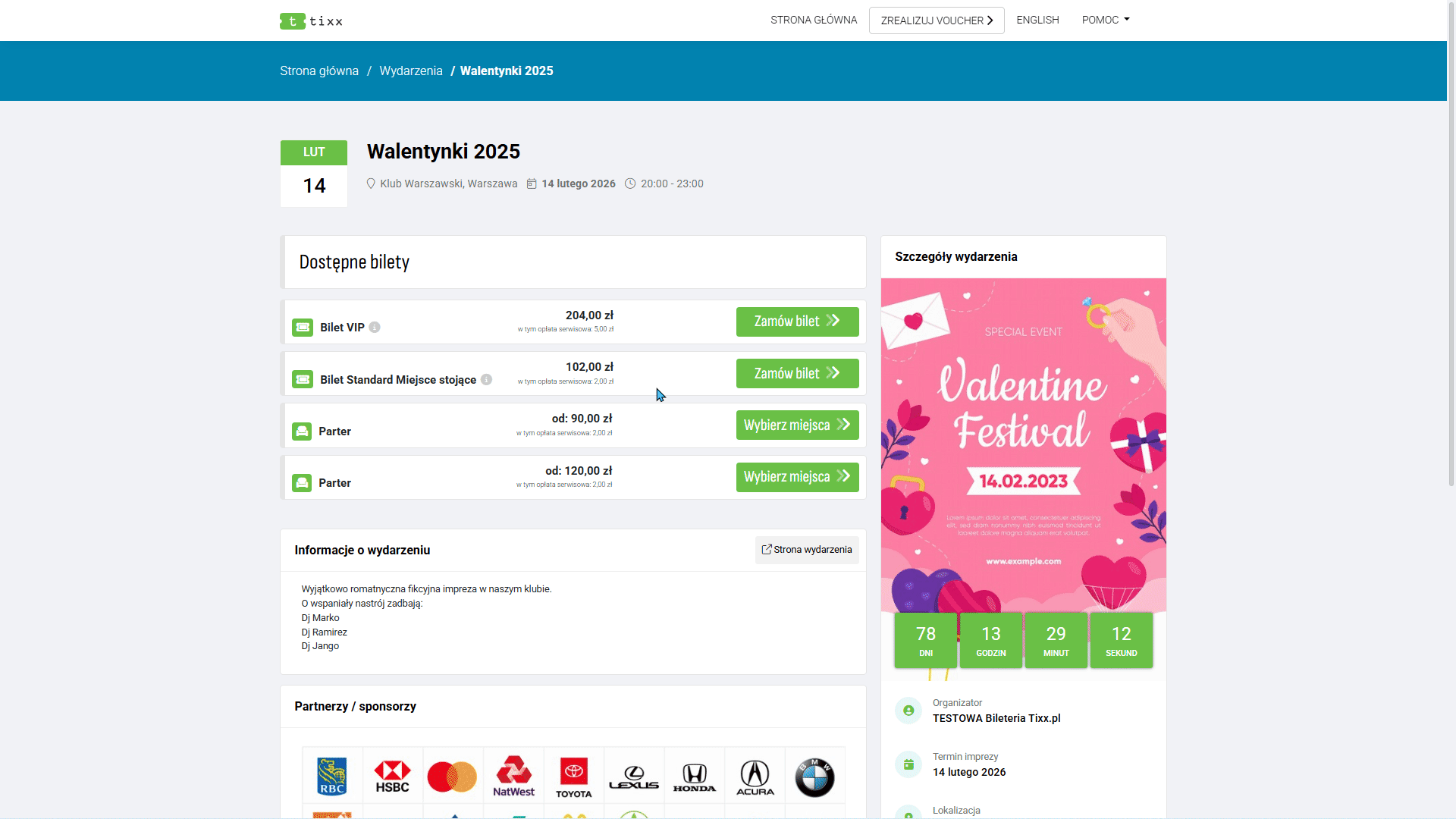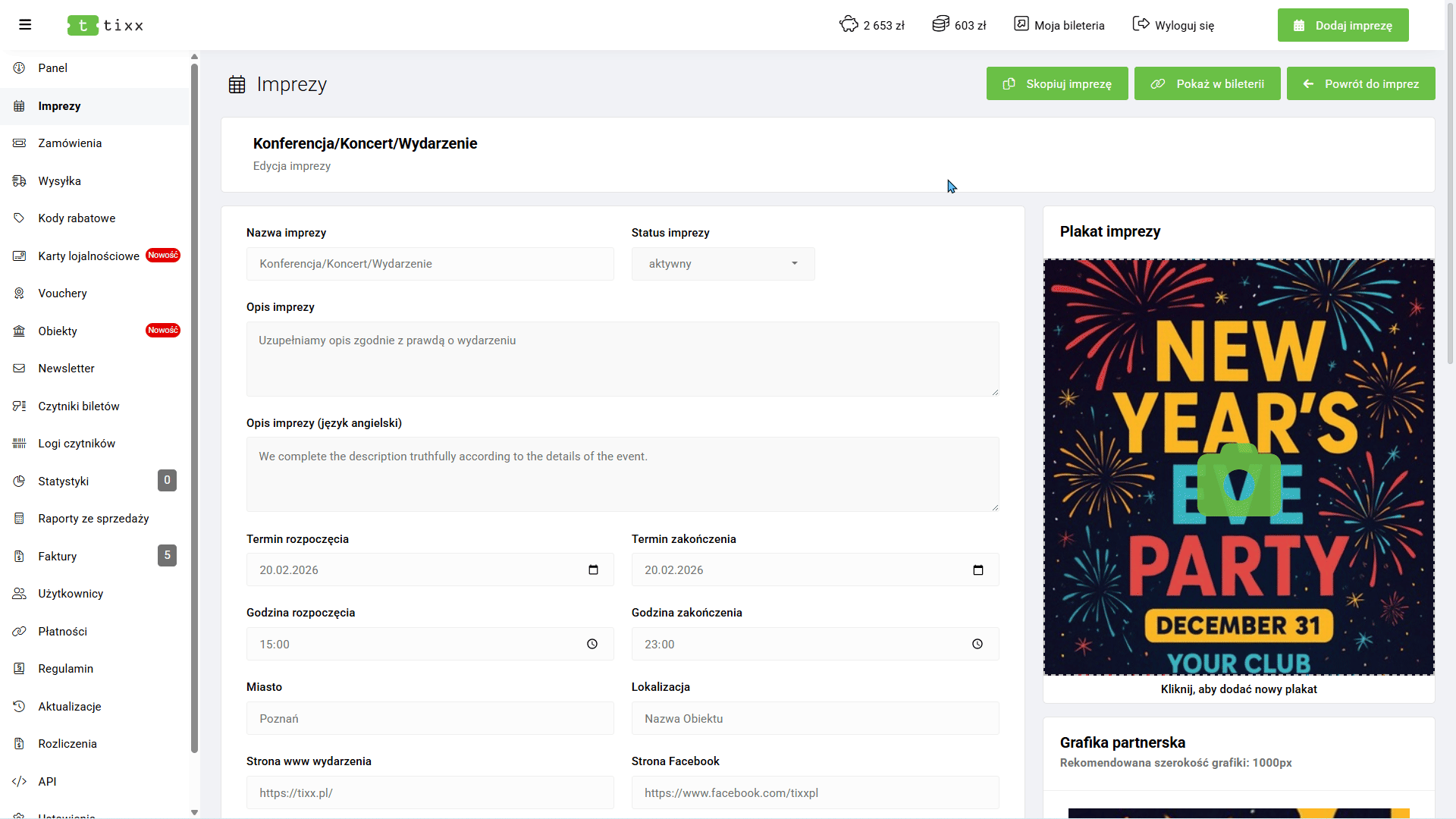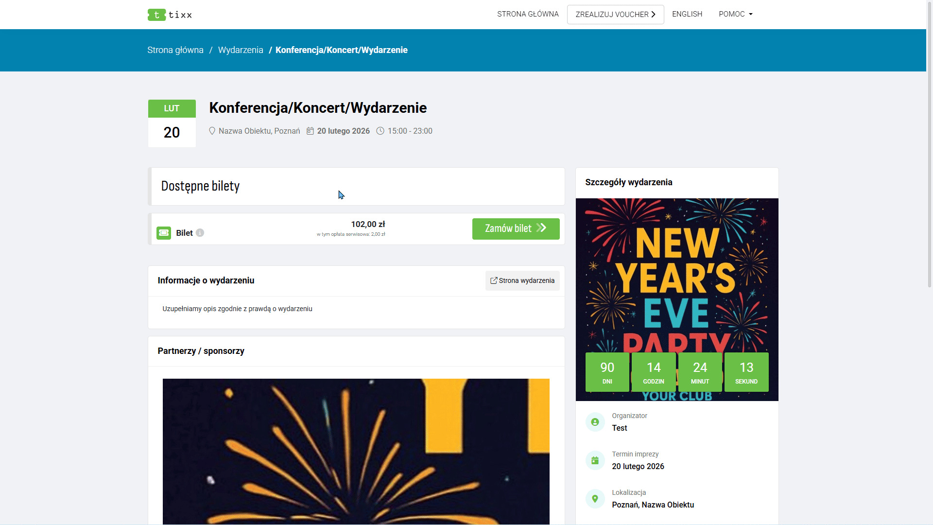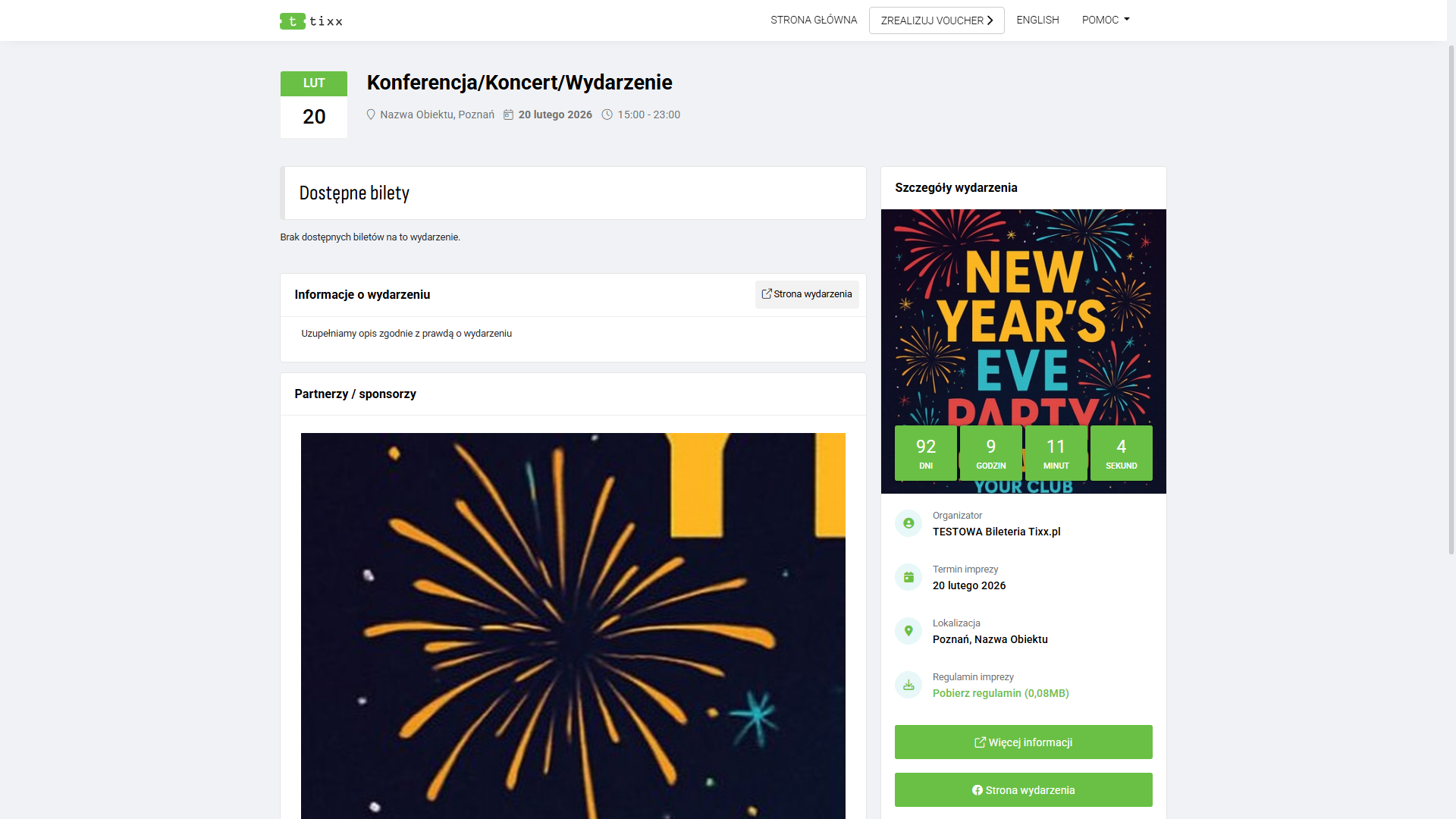 - Grafika Partnerska – Dodajemy jedną grafikę, zawierającą naszych partnerów/sponsorów. Grafika widoczna jest pod opisem wydarzenia i na biletach