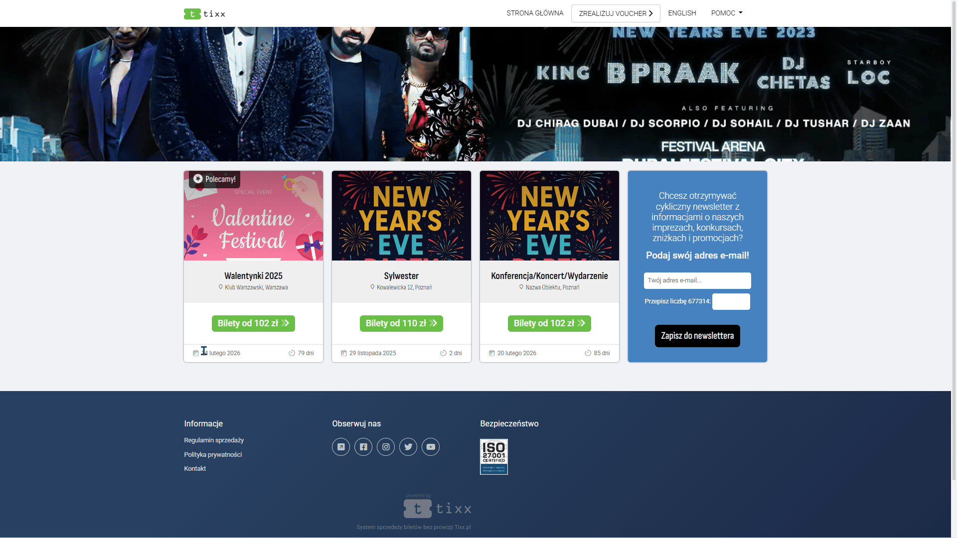 - listę wydarzeń aktualnie dostępnych w sprzedaży,