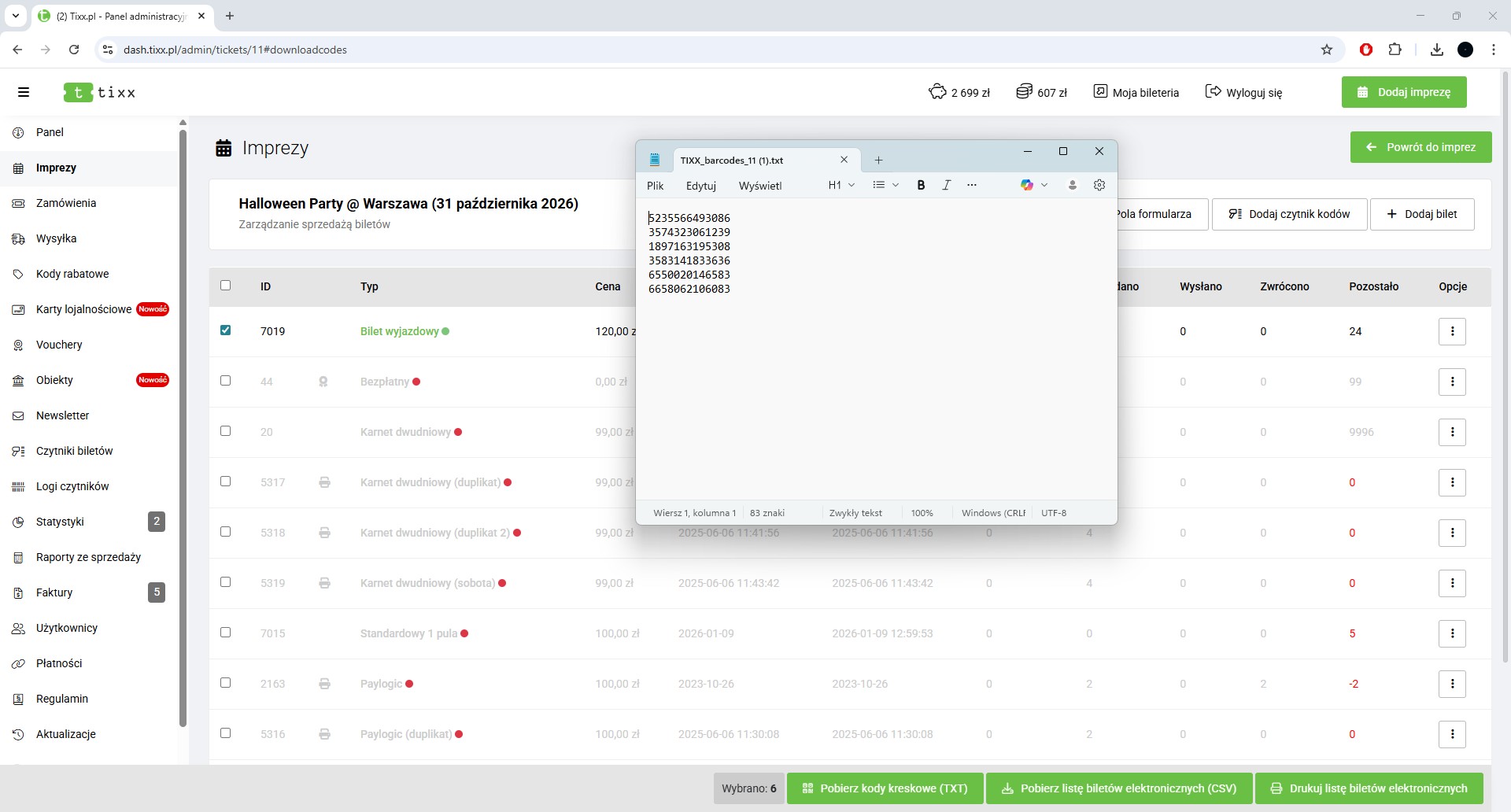 UWAGA! Przygotowując bilety warto odnotować numery ID biletów, gdyż te same numery są drukowane na kopertach do wysyłki. Dzięki temu będzie wiadomo, które bilety należy włożyć do której koperty.